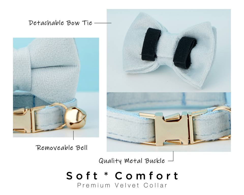 Lightblue Veet Personalized Cat & Small Dog Collar Bow Tie Leash Set,Free Engraved Kitten Puppy Name Tag,Gold Bell,Pet Birthday