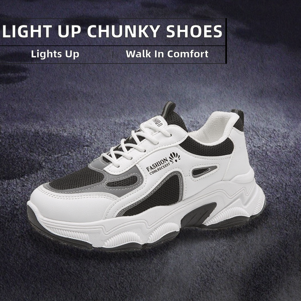Lighted Chunky Sneakers for Women Platform casual Shoes Cushioning Light Weight Lace up Fashion walking style Shoes