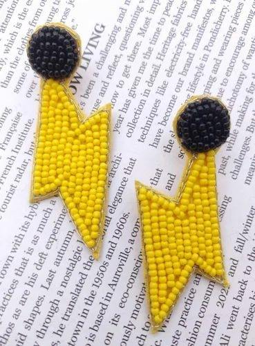 Lightning Bolt Beaded Earrings Handmade Yellow Black Seed Bead Embroidery Fashion Jewelry Statement Custom Wholesale