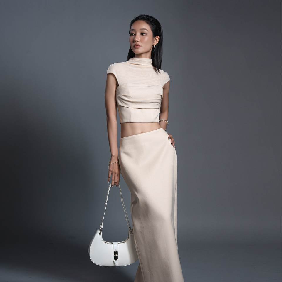 Lightweight 120gr Mesh Crop Mock Neck Short Length Daily Wear Women Above Knee Top Set Cotton Blended Vietnam Clothing