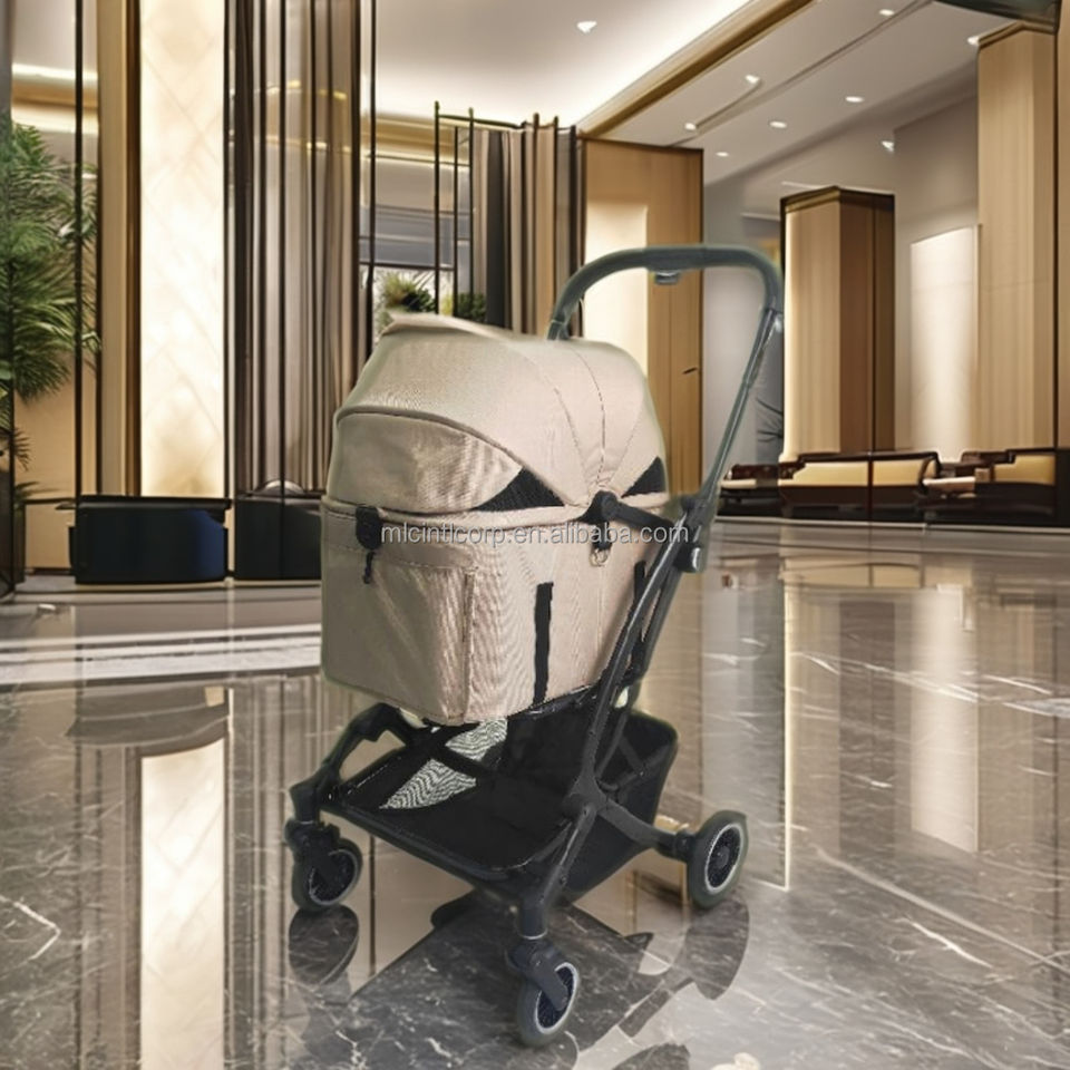Lightweight Aluminum 4-Wheel Foldable Dog & Cat Basket with Shock Absorbers and Patented Design for Small Pets Travel