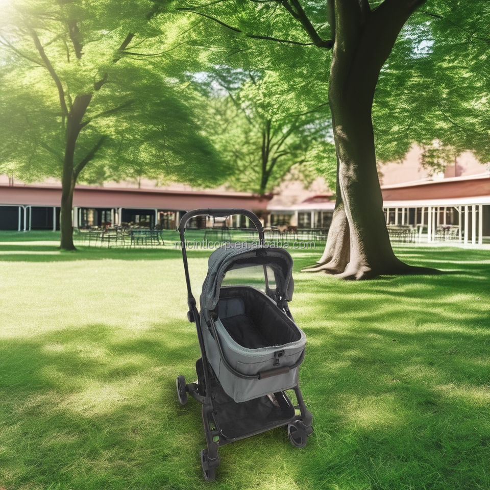 Lightweight Aluminum 4-Wheel Foldable Pet Carrier Stroller with Shock Absorbers for Bike & Car Travel