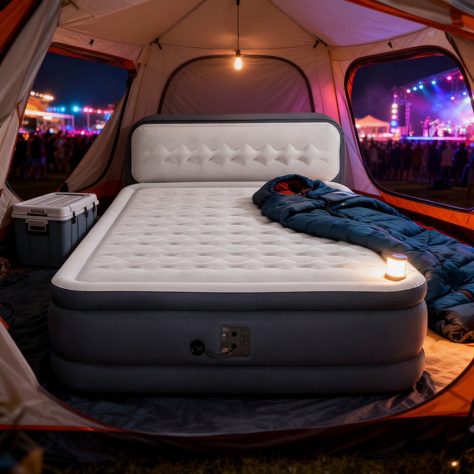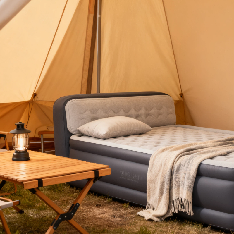 Lightweight Modern Outdoor Camping Air Bed with PVC Topper Flocked Backrest Widened Size & Portable Design