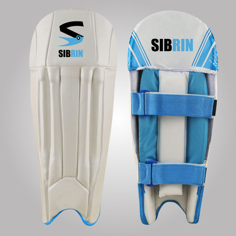 Lightweight Custom Cricket Wicket Keeping Pads Blue White Plain Internal Padding Protective Gear with Your Logo & Color Options