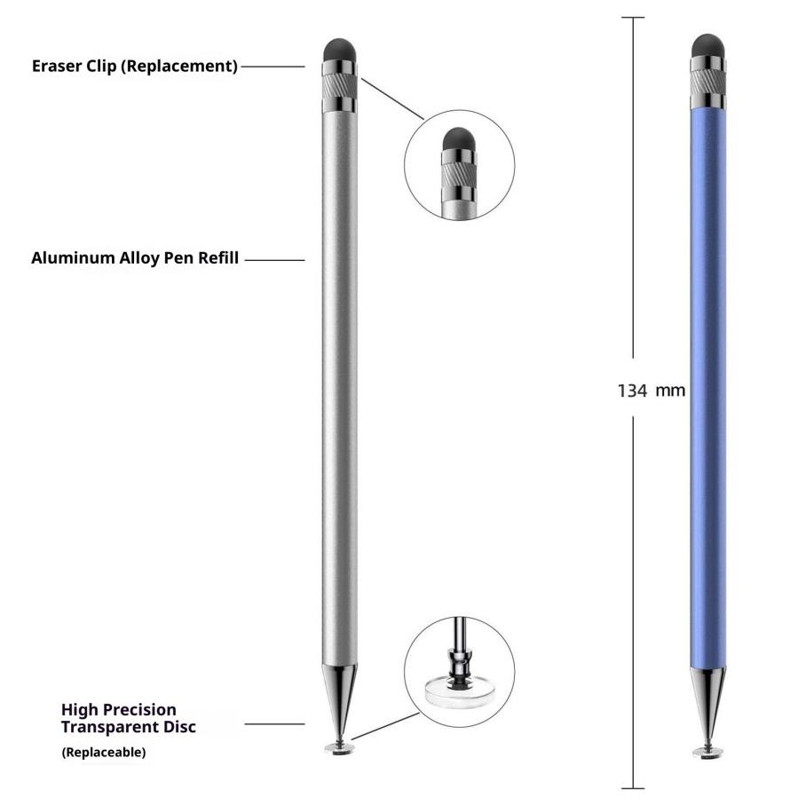 Lightweight Dual-Tip Capacitive Metal Pen with Round Disc Silicone Tip for Touch Screen Tablets and Phones