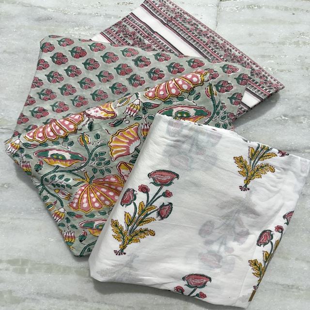 Lightweight Eco-Friendly Soft Pink Floral Plain Indian Cotton Dress Fabric for Girls & Boys by Yard Indian Origin