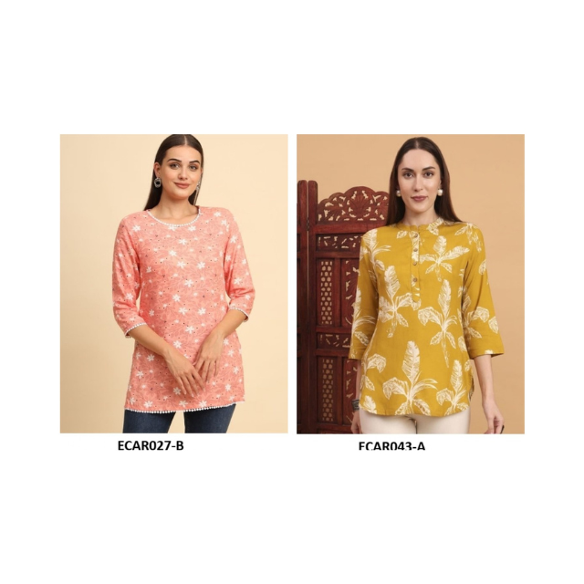 Lightweight Ethnic Cotton-Rayon Kurti Top for Women Perfect Indo-Western Blend for Summer Fashion and Global Export Orders