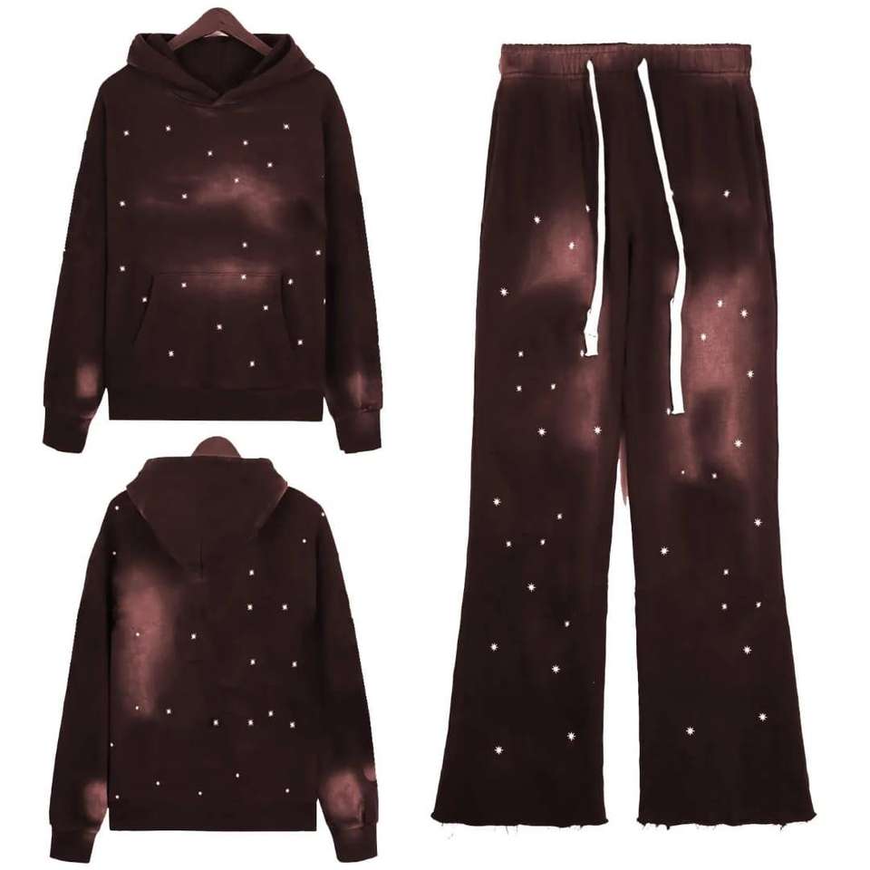 Lightweight Fleece Women Tracksuit Vintage Washed Hoodie Pants Flame Patch Rhinestone Graphics Regular Fit Winter