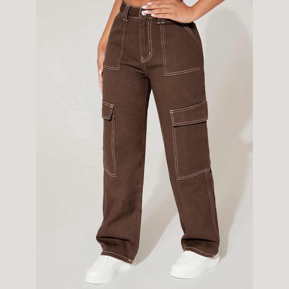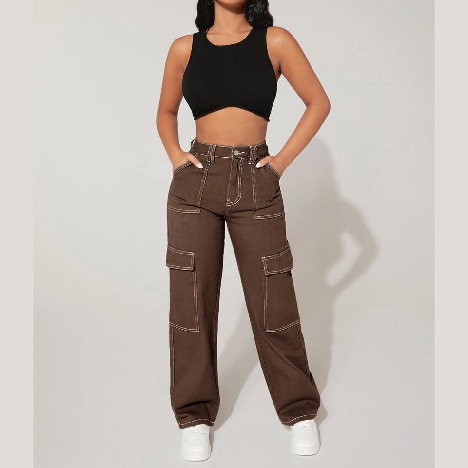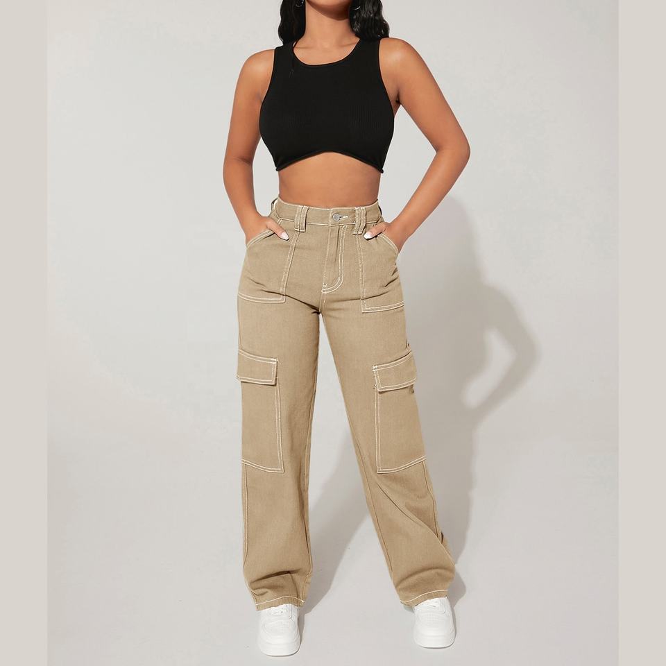 Lightweight Fashion Ladies Cargo Pants Wholesale Custom Logo Nylon Flap Pocket Straight Waist Trousers