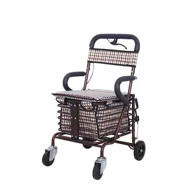Lightweight Foldable Hand Trolley With 4 PU Wheels For Elderly Shopping Use Steel Pipe Construction