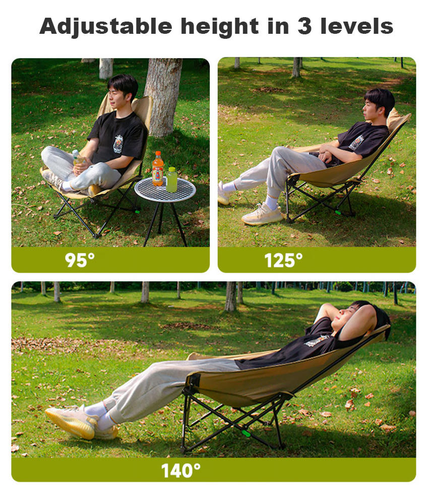 Lightweight Folding High-back Chair Adjustable Beach Lounger for Outdoor Camping Fishing Garden Park Use