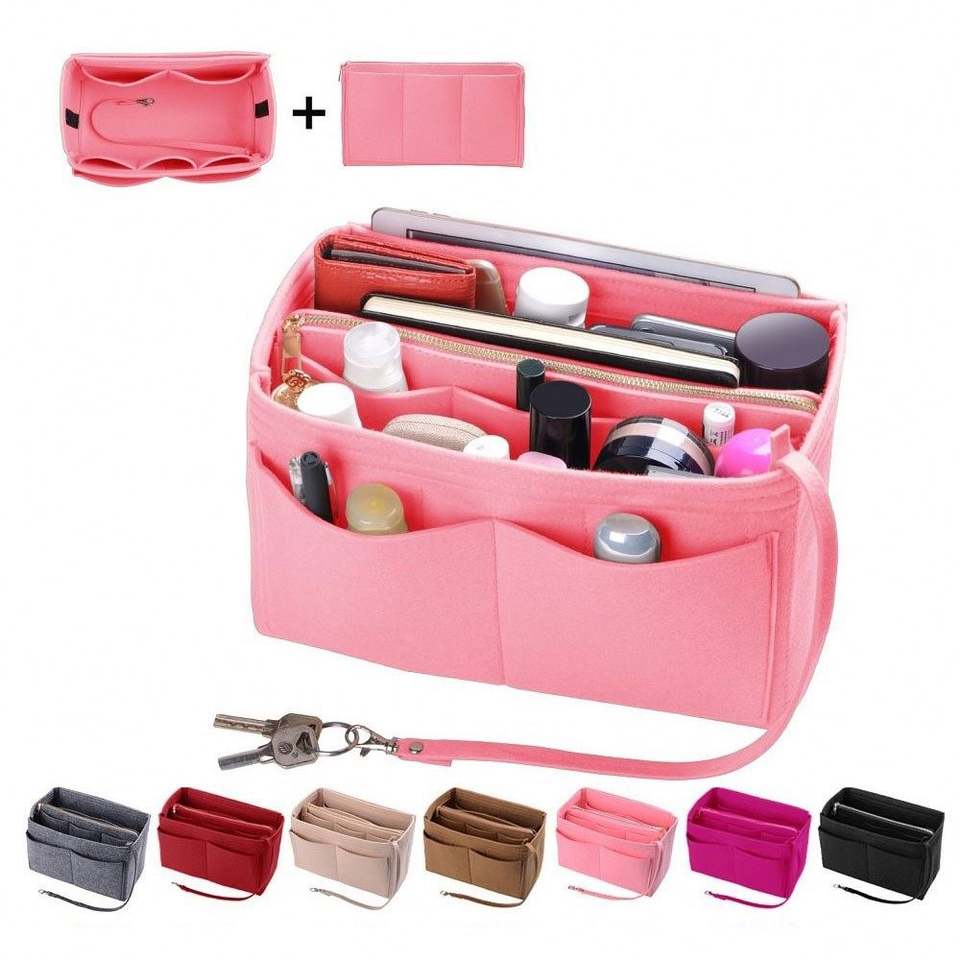 Lightweight Makeup Organizer Insert Handbag Felt Cosmetics Organizer Portable Felt Liner Bag Organizer Custom Cosmetic Bag