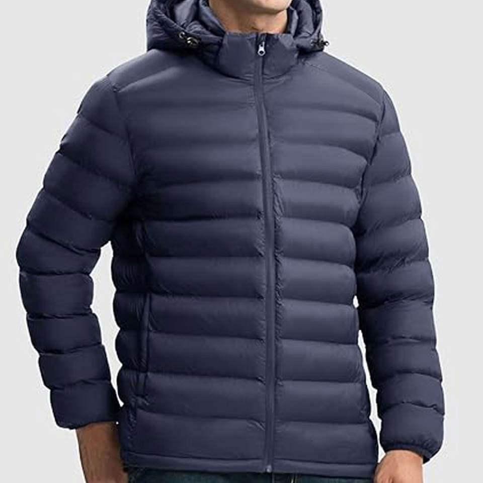 Lightweight Mens Detachable Hood Puffer Jacket Water Resistant Insulated Coat Elastic Cuffs Adjustable Hem Custom Logo Printing
