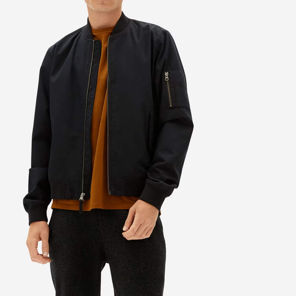 Lightweight Polyester Bomber Jacket for Men OEM Custom Logo Stand Collar Winter Jacket with Zip Design Men Bomber Jacket