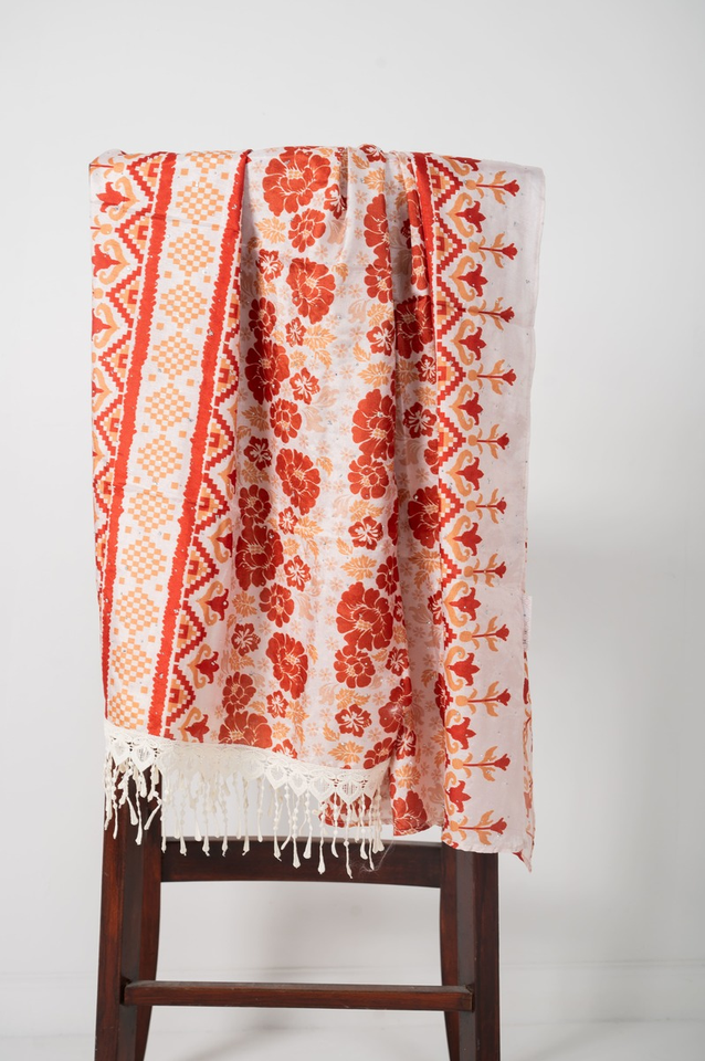 Lightweight Printed Scarves with Tassel Lace for Comfortable Daily Wear