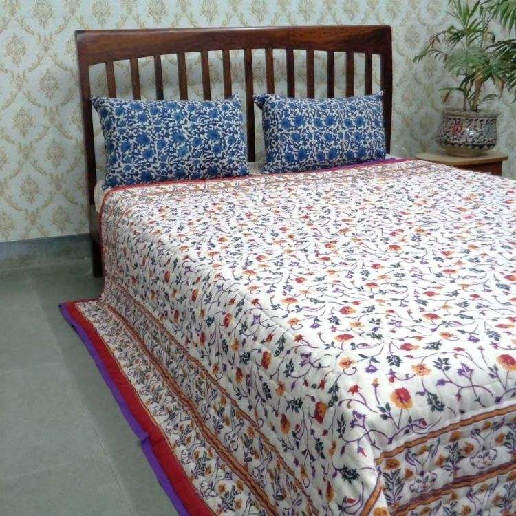 Lightweight Organic Cotton Queen Quilt Set Bohemian Floral Printed Reversible Coverlet Soft Summer Bedding Design on Sale