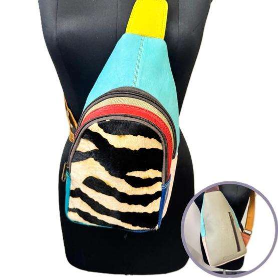 Recycled Colorful Leather Crossbody Chest Bag