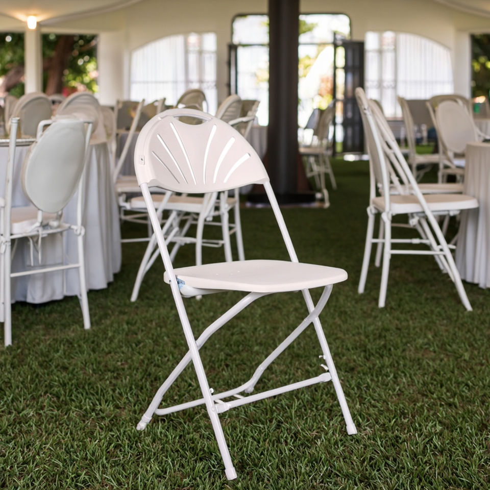 Lightweight Sturdy White Plastic Folding Chair Fan Back Design Timeless Charm for Weddings Garden Receptions Formal Banquets