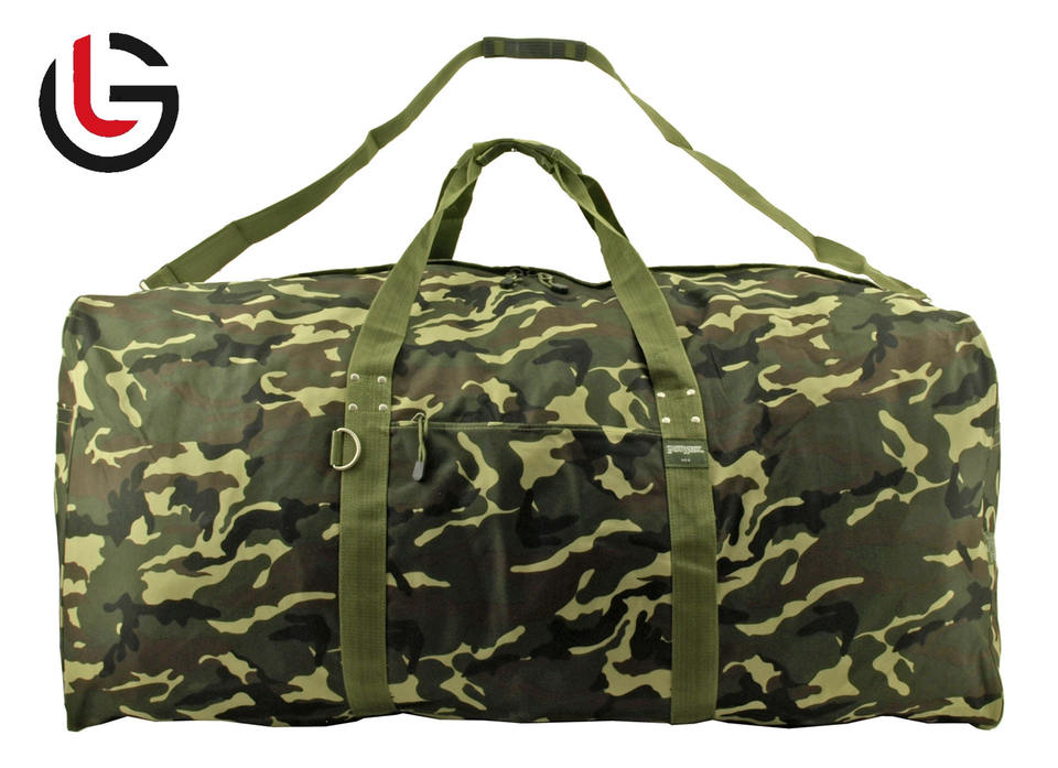 Lightweight Waxed Cotton Twill Canvas Duffel Bag with Genuine Leather Trims Zipper Closure Camouflage Design for Outdoor Travel