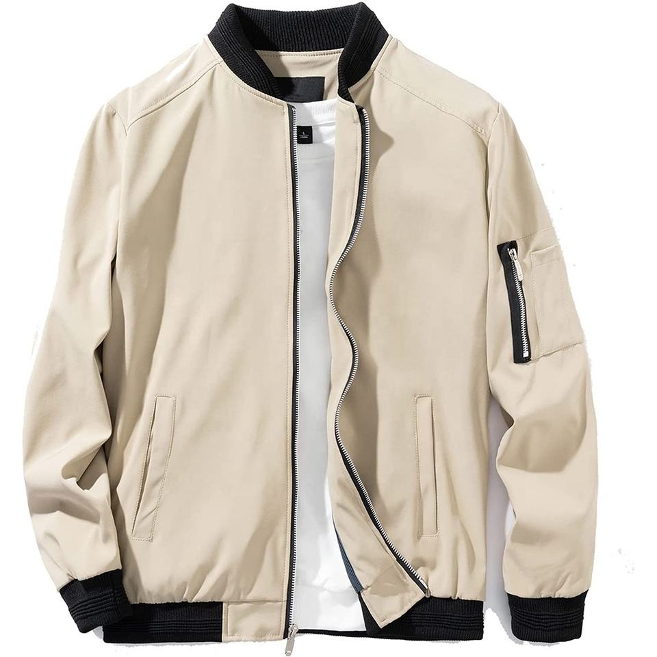 Lightweight Windproof Men's Zip-Front Varsity Jacket Fleece-Lined Softshell Material Breathable Stand Collar Spring Winter