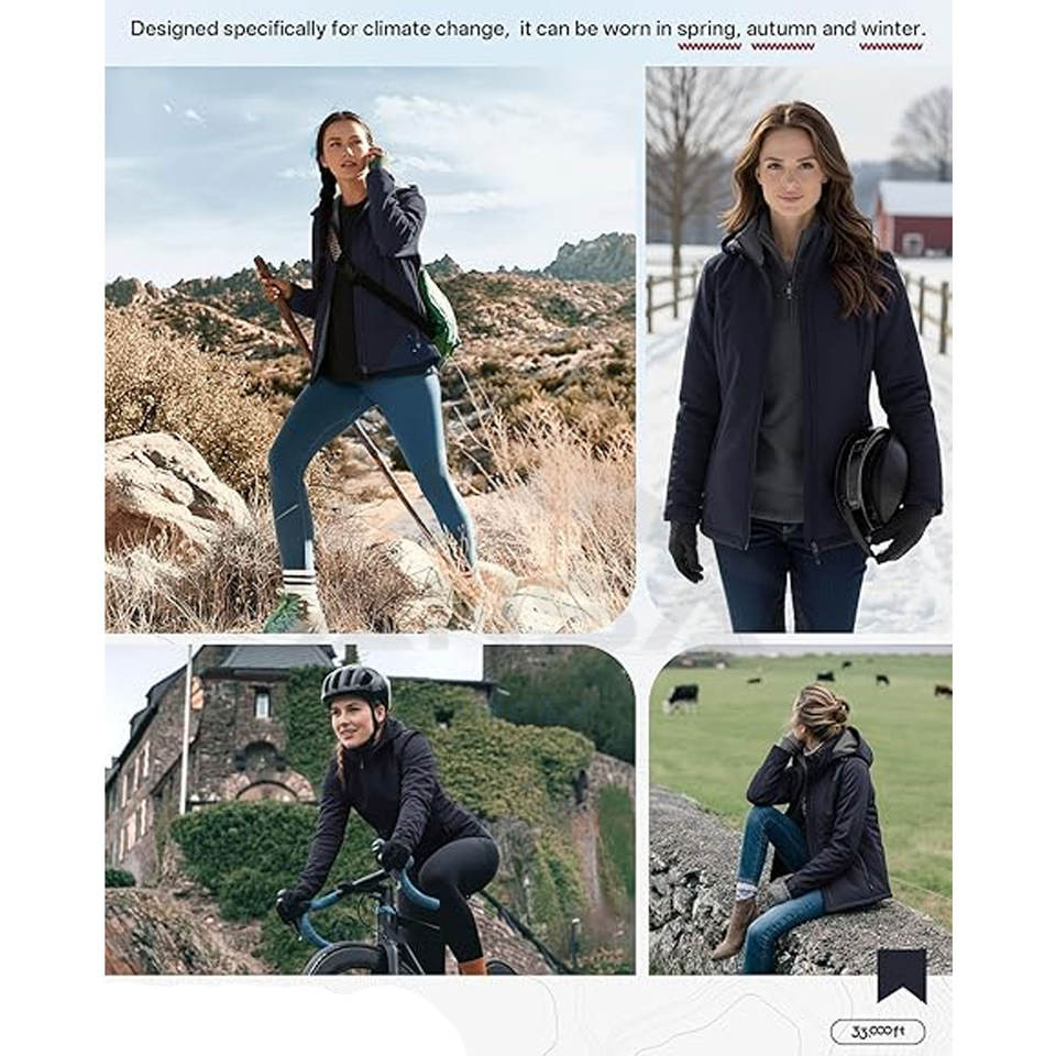 Lightweight Women Softshell Jacket Waterproof Windproof Rain Jacket with Removable Hood Fleece Lined Insulated Outerwear