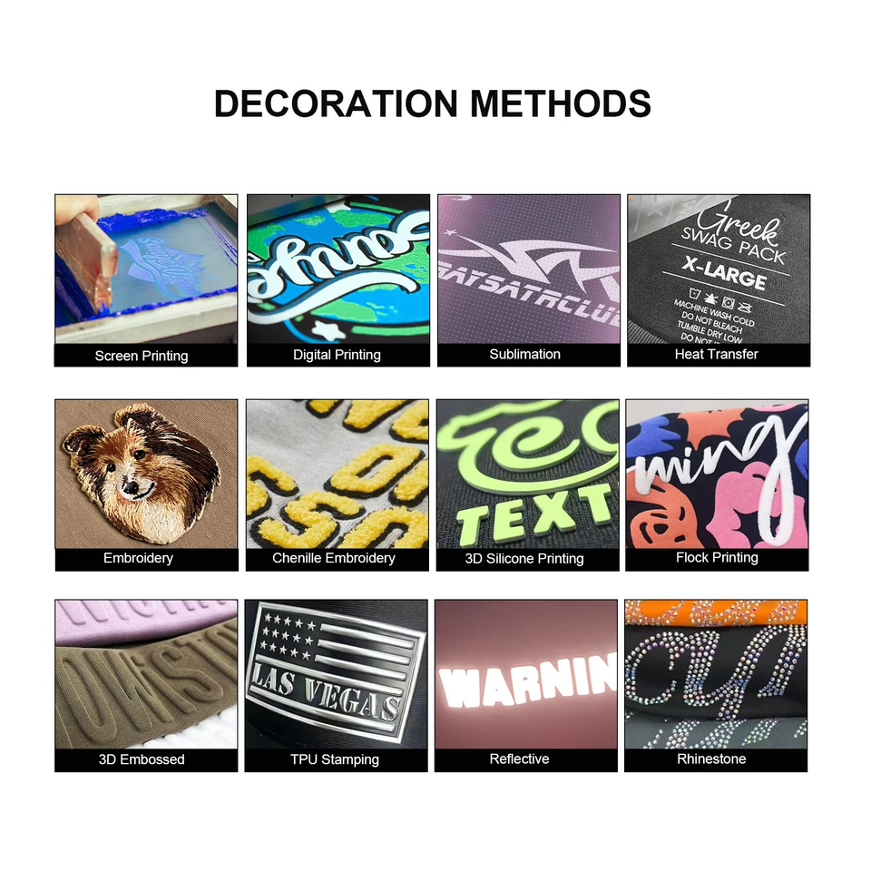 Logo position:Front, back, Left Sleeve, Right Sleeve