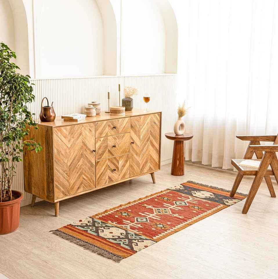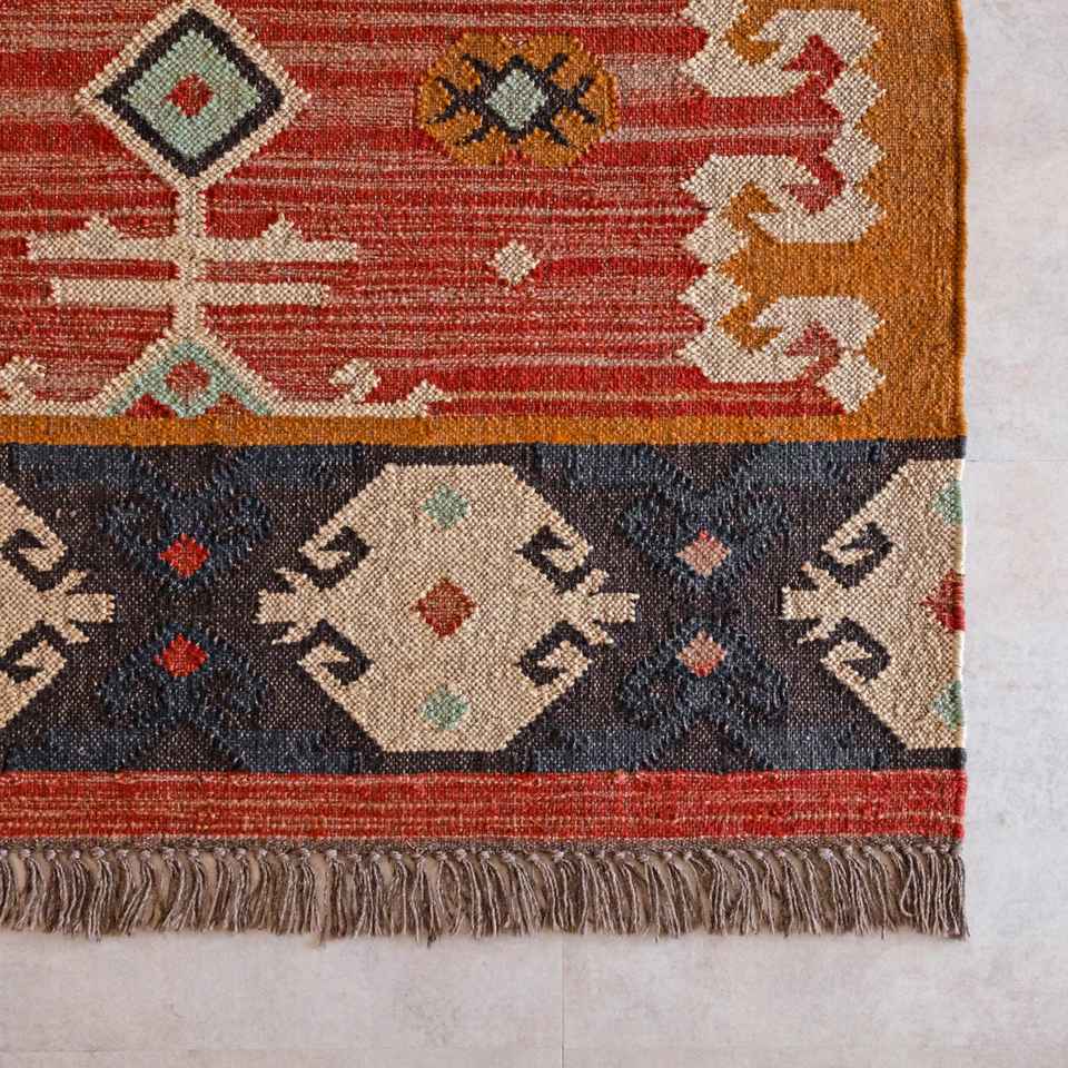 Lightweight and Breathable Carpets Custom Woven Jute-Woolen Kilim Rugs for Living Room Bedroom & Study
