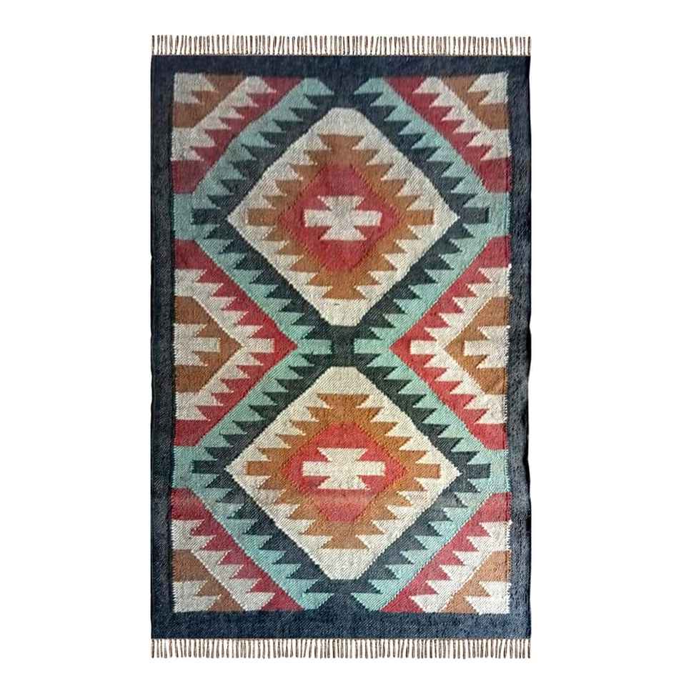 Lightweight and Breathable Mat Hand Woven Jute-Woolen Kilim Rugs for Living Room Bedroom & Study