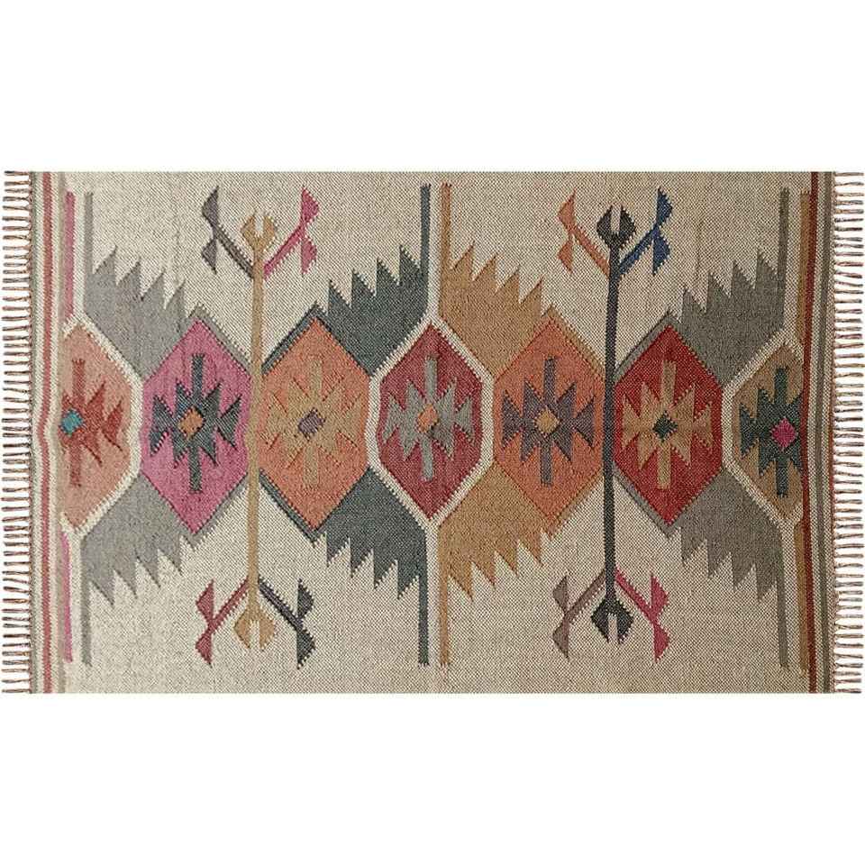 Lightweight and Foldable Custom Hand Woven Jute-Woolen Kilim Rugs for Living Room Bedroom & Study