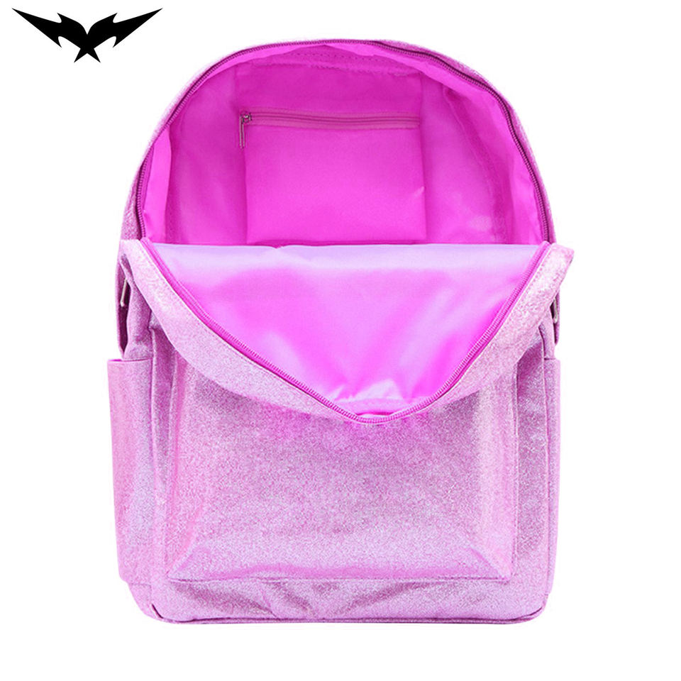 Lightweight for Pink Glitter Backpack with Rainbow Shiny Sports Style Zipper Closure Strap Carrying System for Boys Girls School