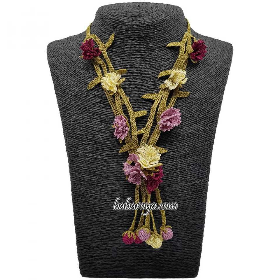 Lila İğne Oyası Karanfil Bahçesi Kolye Mürdüm Fashionable Necklace