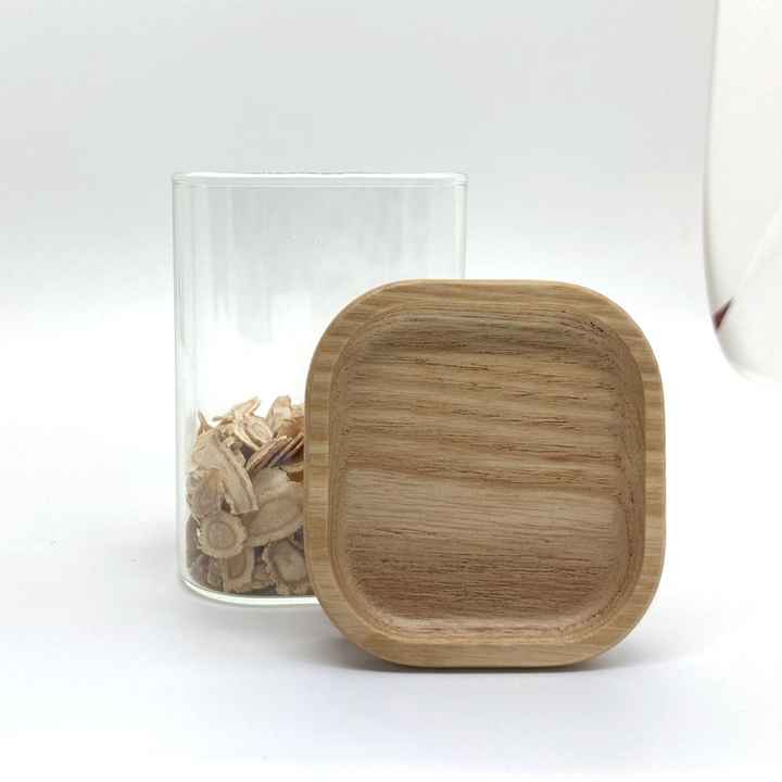 Lilac German Quality Glass Food Storage Heat Proof Jars With Acacia Wooden Square and Round Lid
