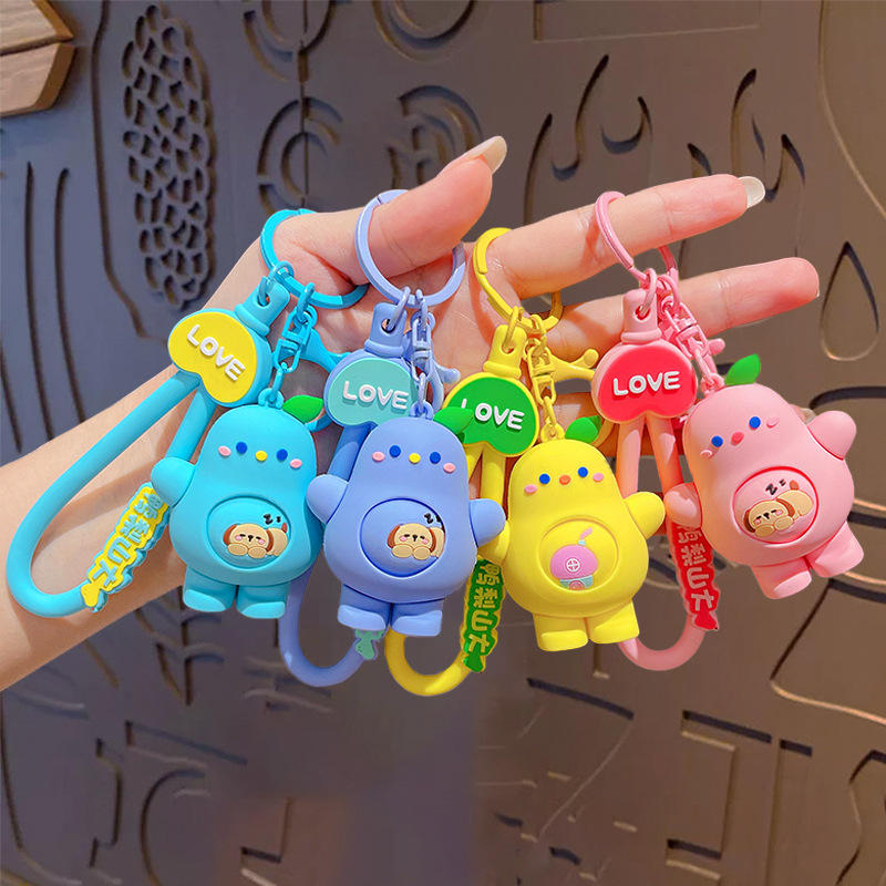 Lilangda Creative Simulation Avocado Carabiner Keychain Soft Rubber Fruit Pendant with Net Red Bag Small Gift Idea