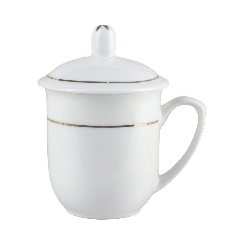 Liling Ceramic Conference Mug With Lid Minimalist Design Office Gift Cup White Porcelain Business Use