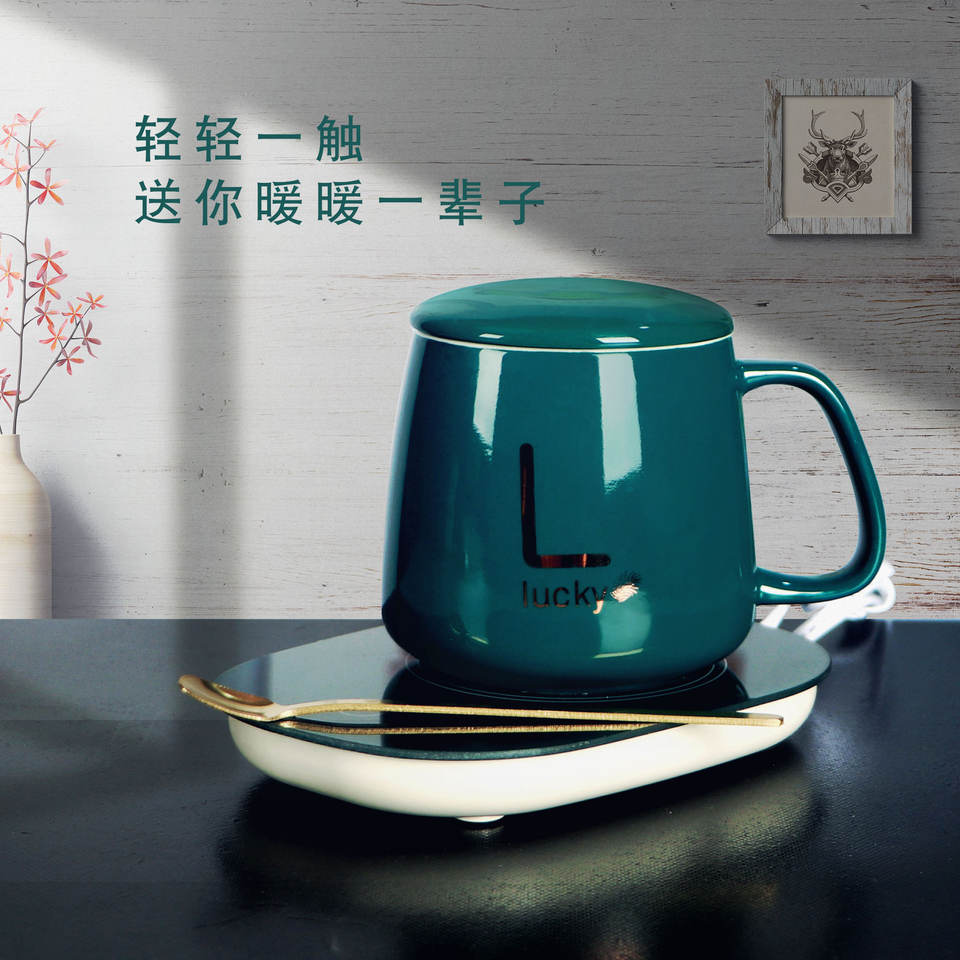 Liling Hongbo Smart Heating Mug 55C Ceramic With Lid And Spoon USB Charging Coffee Milk Warmer Gift Cup