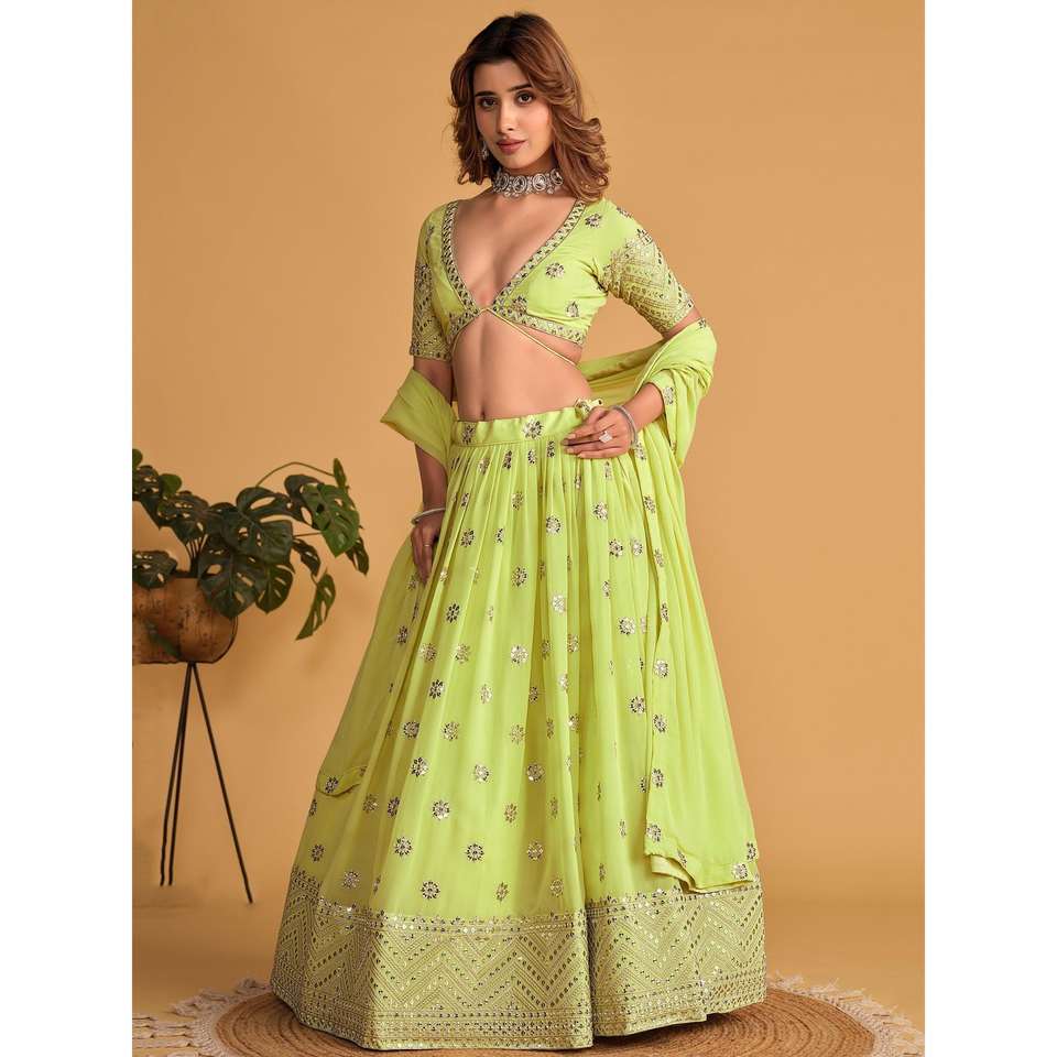 Lime Green Georgette Traditional Lehenga Choli Ravished Embroidered Chinese Clothing