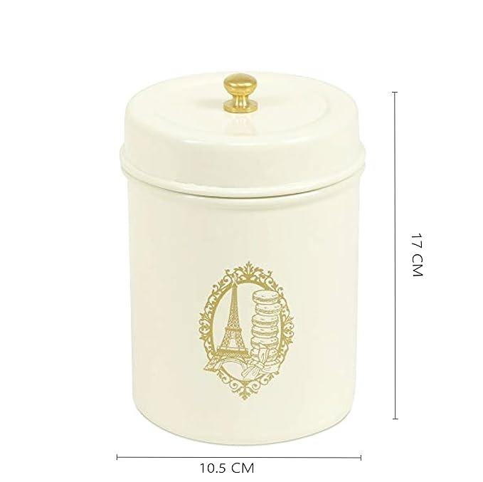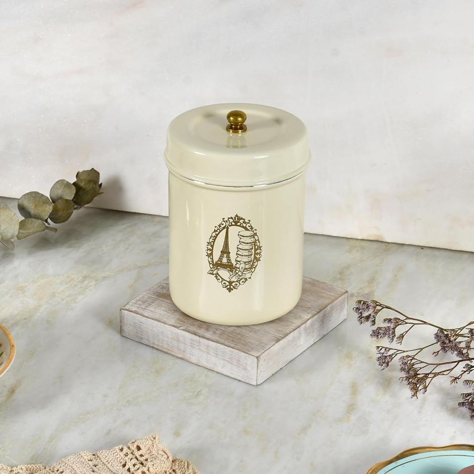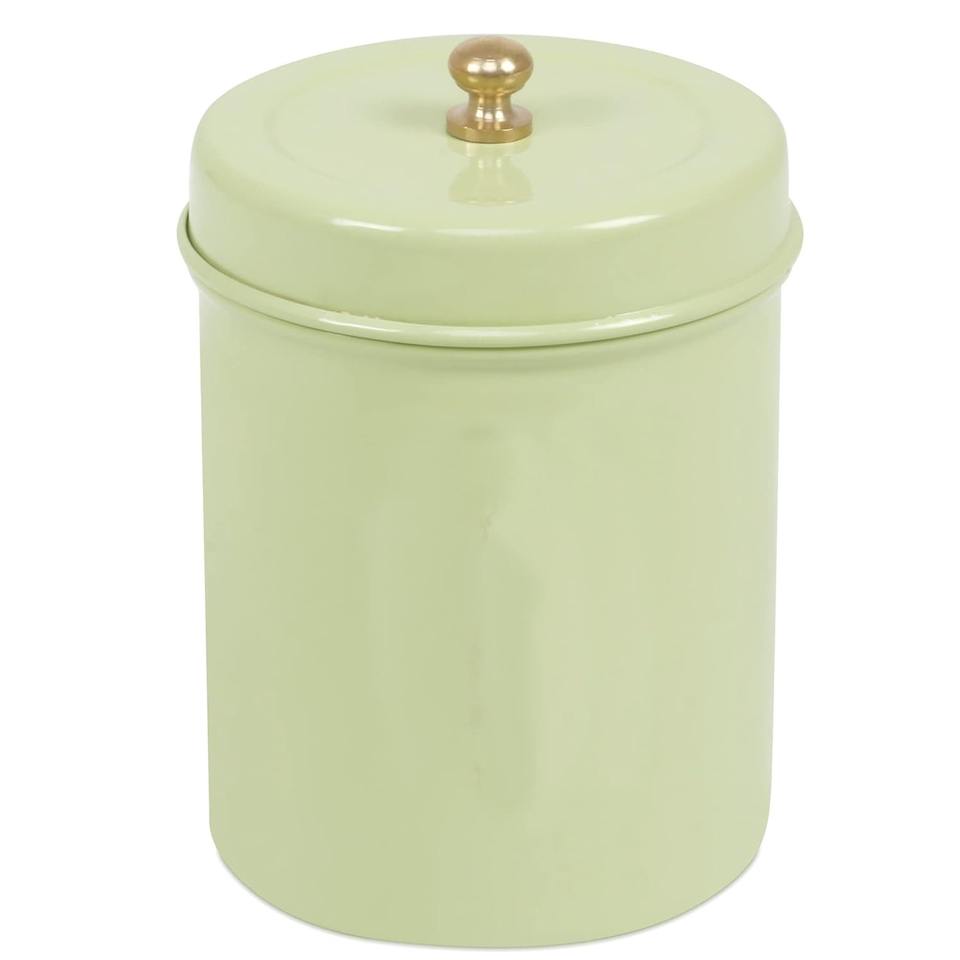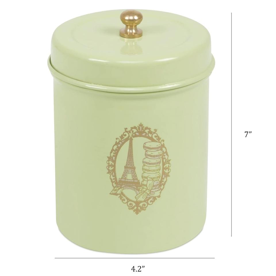 Lime Green Metal Paris Themed Storage Jar with Gold Knob French Vintage Cylindrical Container Direct Supply By The Manufacturer