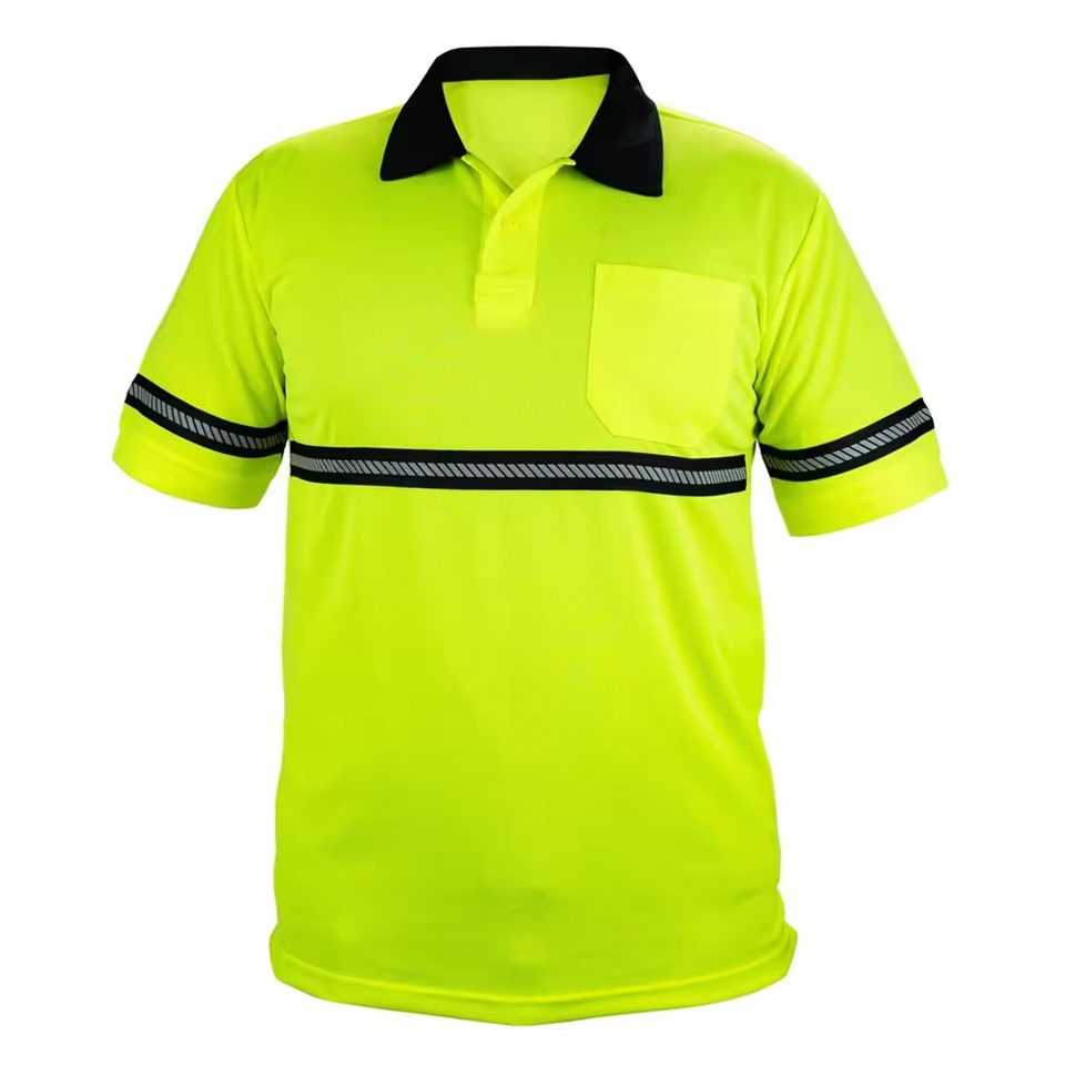 Lime Yellow Reflective Polo Shirt Safety Workwear High Visibility Short Sleeve Industrial Construction Protective Uniform