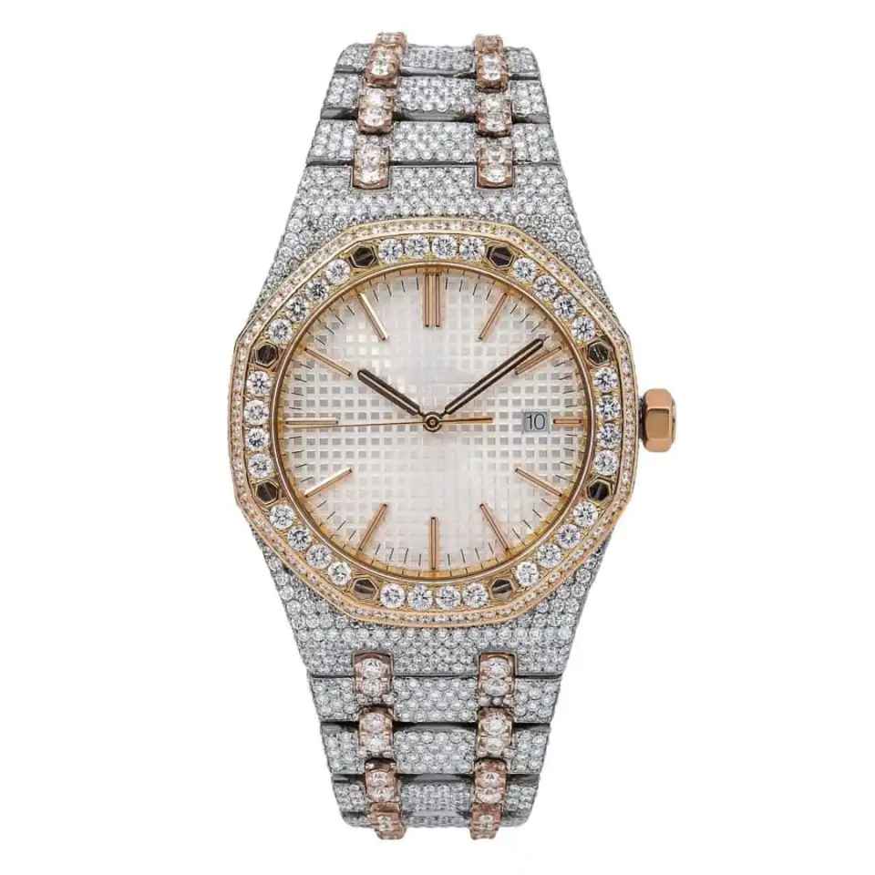 Limited Edition Luxury Moissanite Diamond Watch with Full Rose Tone VVS Iced Design Quartz Movement Stainless Steel Band