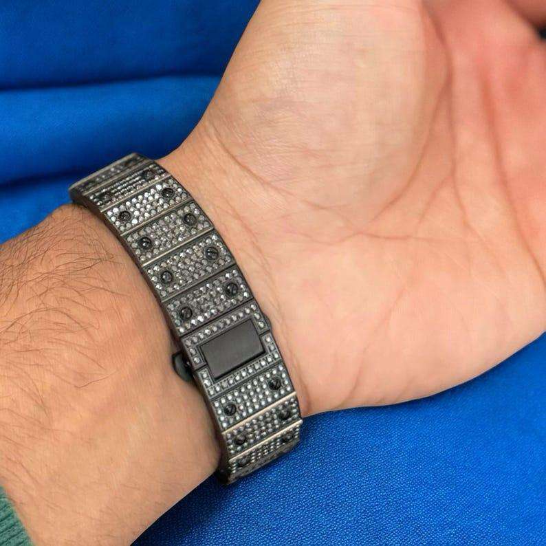 Limited Edition Stainless Steel Band Analog Watch White Ronam Numeral Dial Fully Iced Black Moissanite Diamond Watch Hip Hop