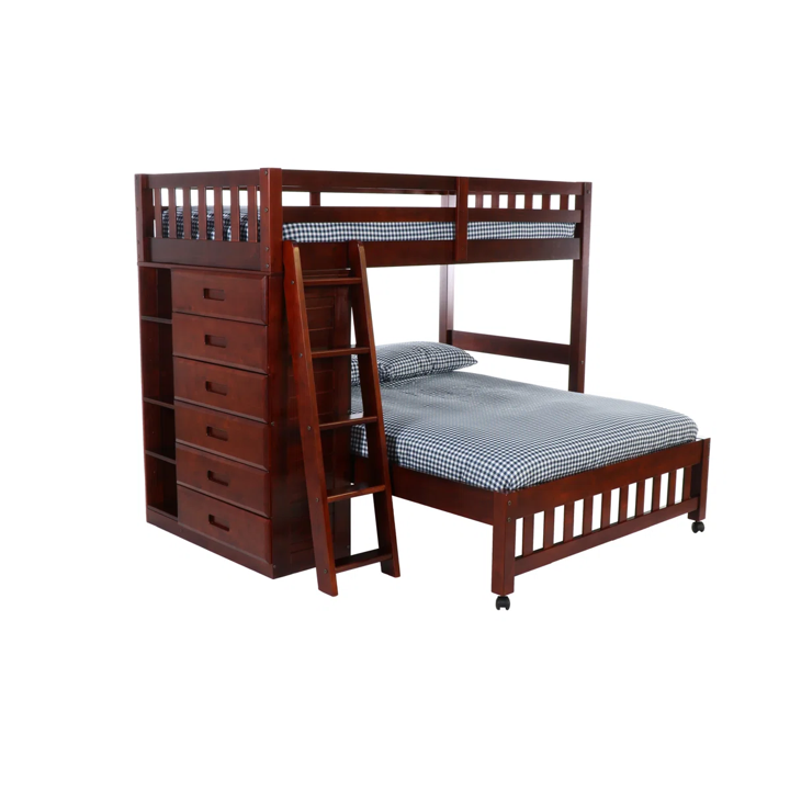Lineage Corporation Beckford Twin Over Full L-Shaped Loft Bed with 6 Drawer Chest Storage for Children's Bedroom Living Room