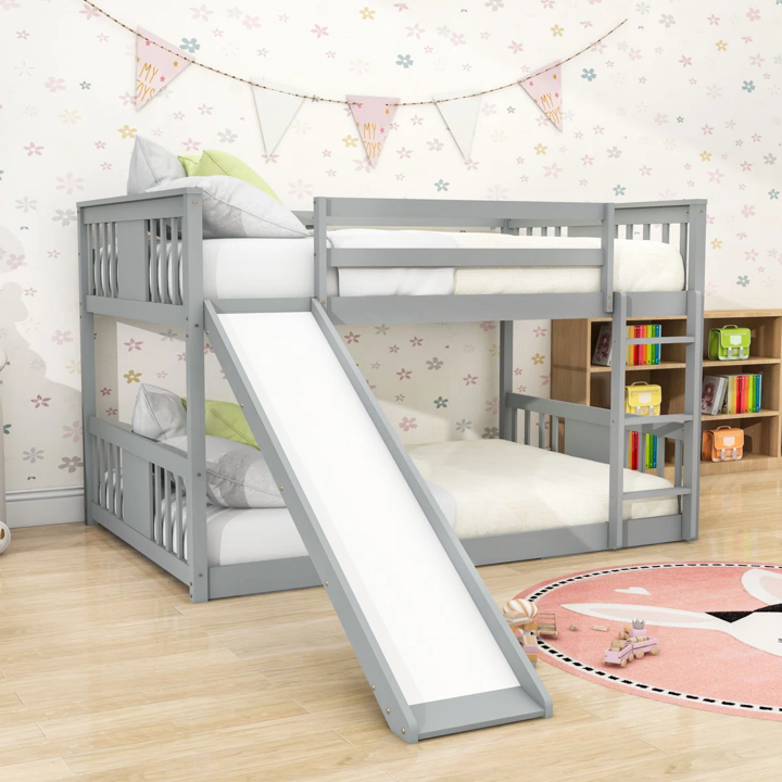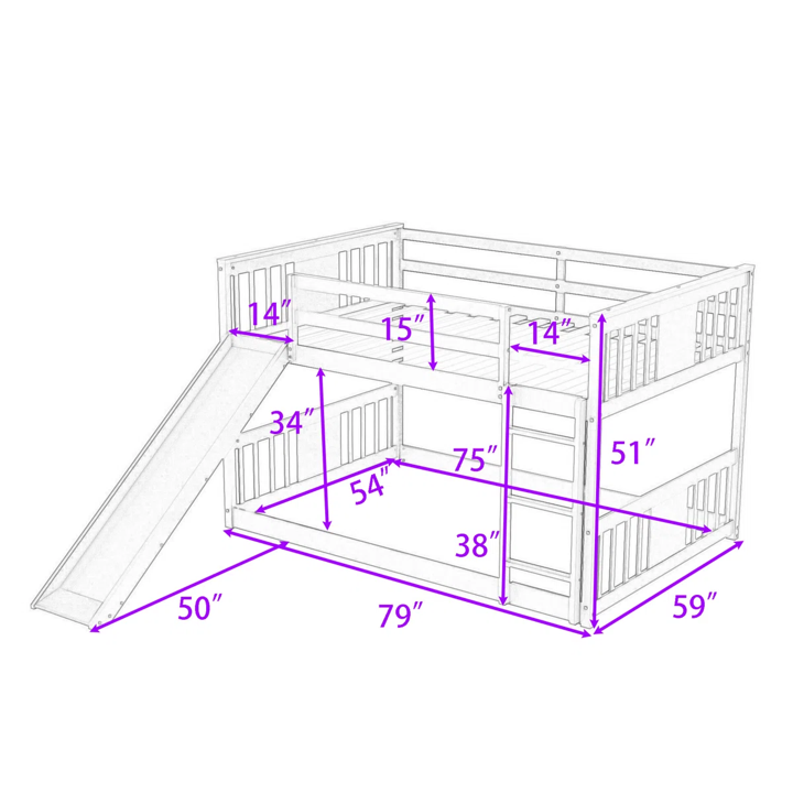 Lineage Corporation Full-Over-Full Wooden Standard Bunk Bed with Slide Accommodates Two Full-Size Beds for Bedroom Use