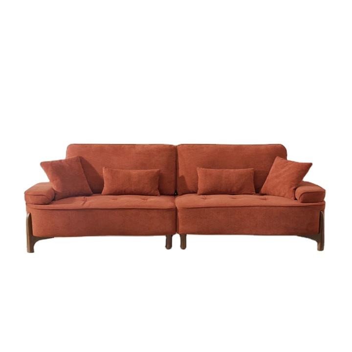 Upholstered Sofa, Wood Frame Sofa With Solid Wood Legs And 4 Pillows