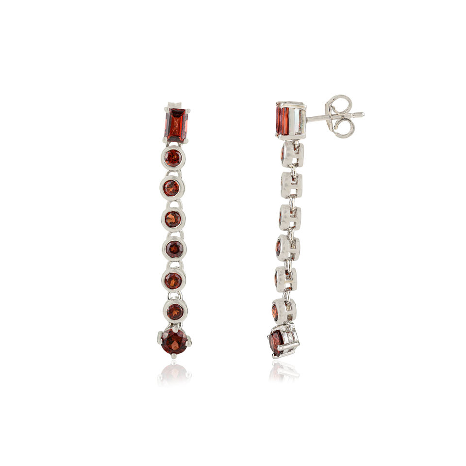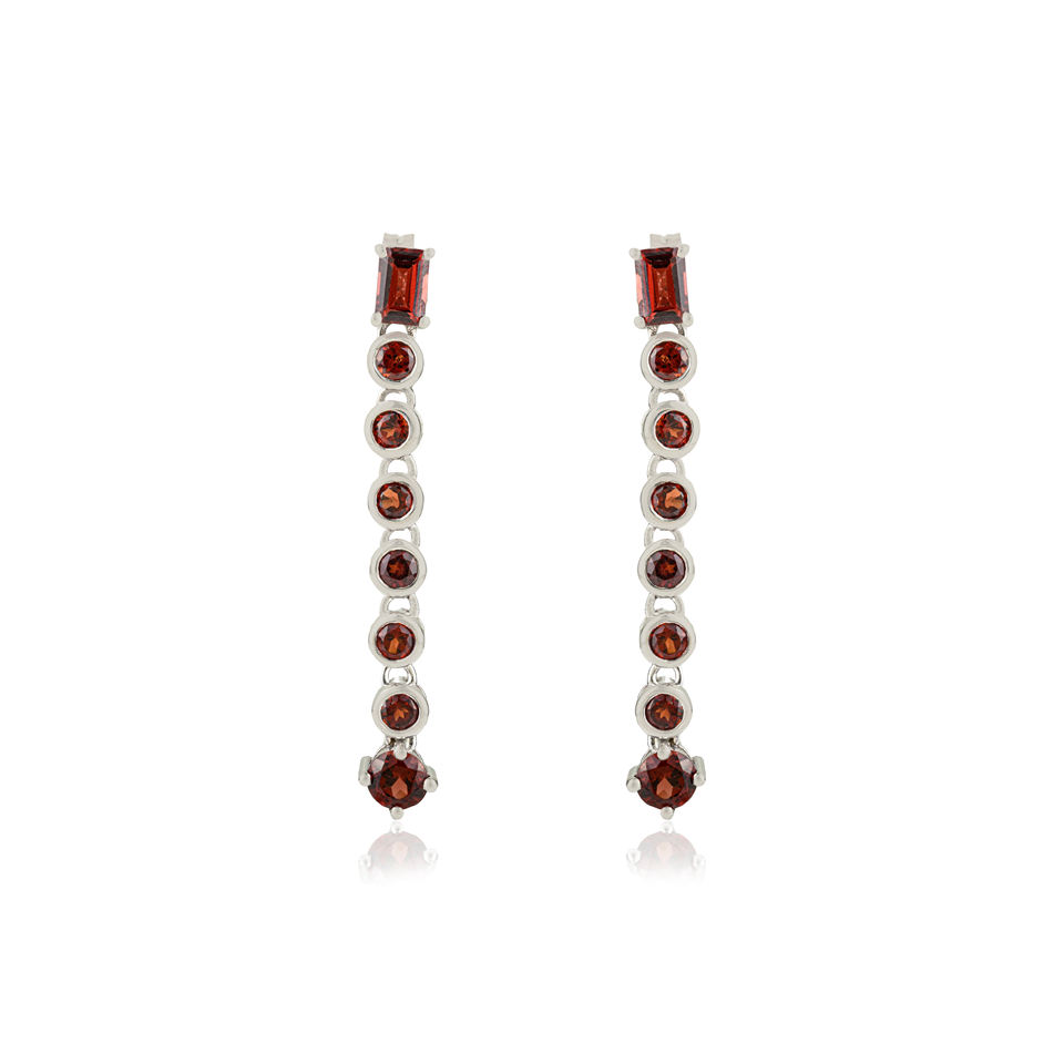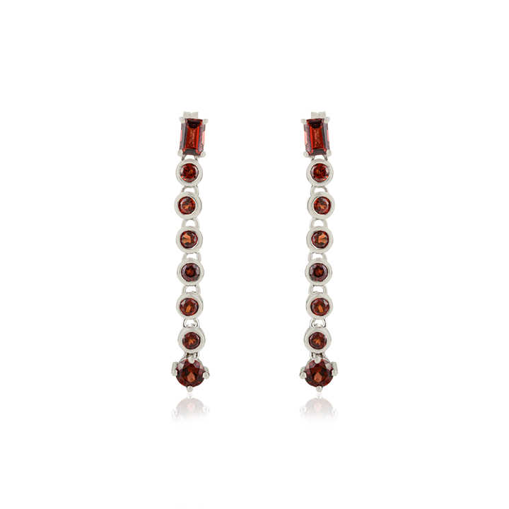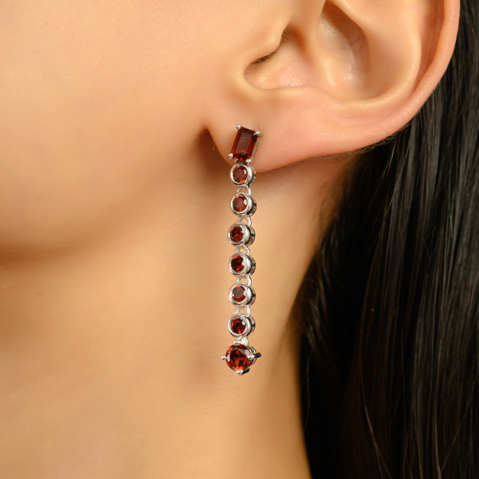 Linear Dangle Earrings 925 Sterling Silver Genuine Red Garnet Gemstone Bar Design Sleek Luxury Evening Statement Jewelry