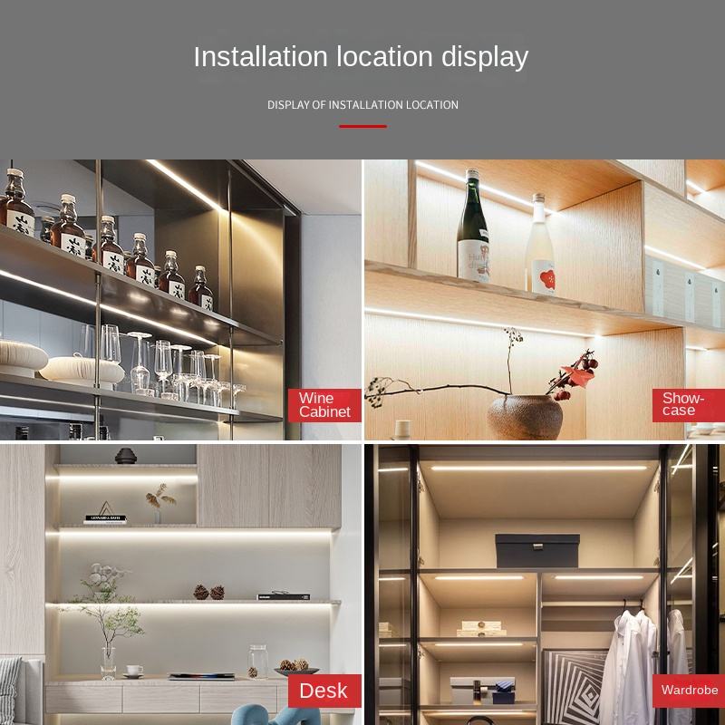 Linear Rechargeable Dimmable 3500K Warm White Wall-Mounted Lighting Strip Channel Extrusion Housing Aluminium Cabinet Lights