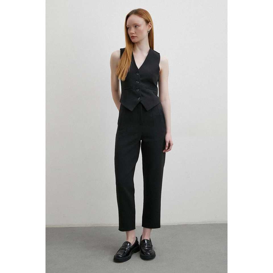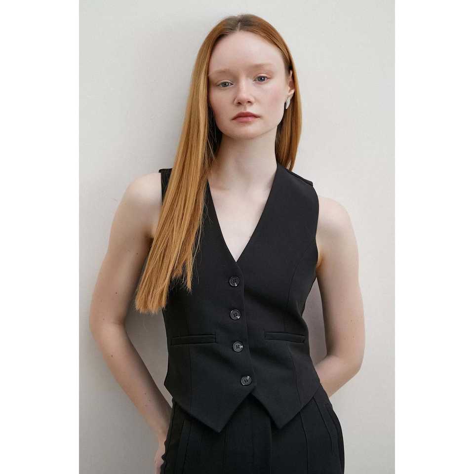Lined Cup Vest Black Women's Suits Button Decoration Waistcoat