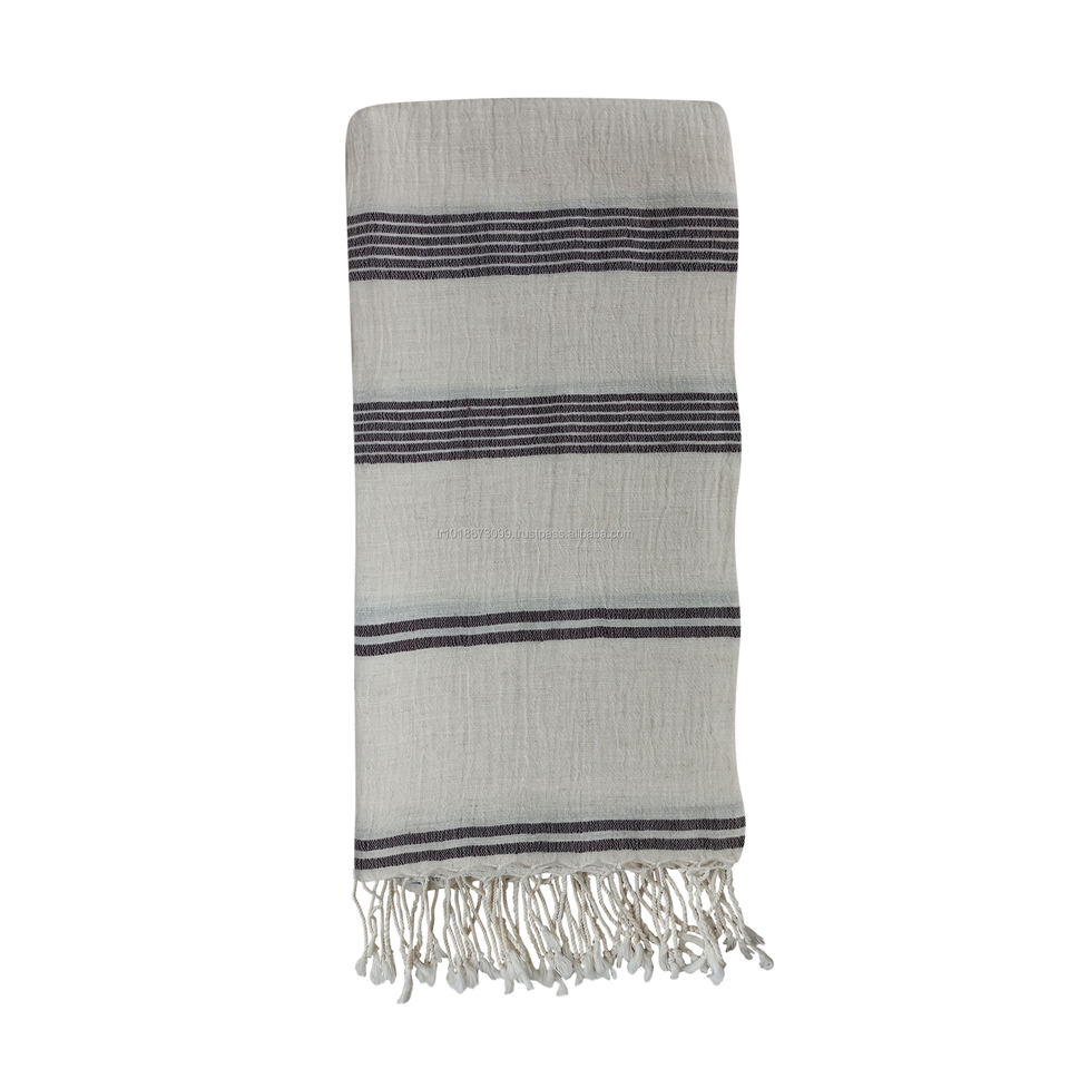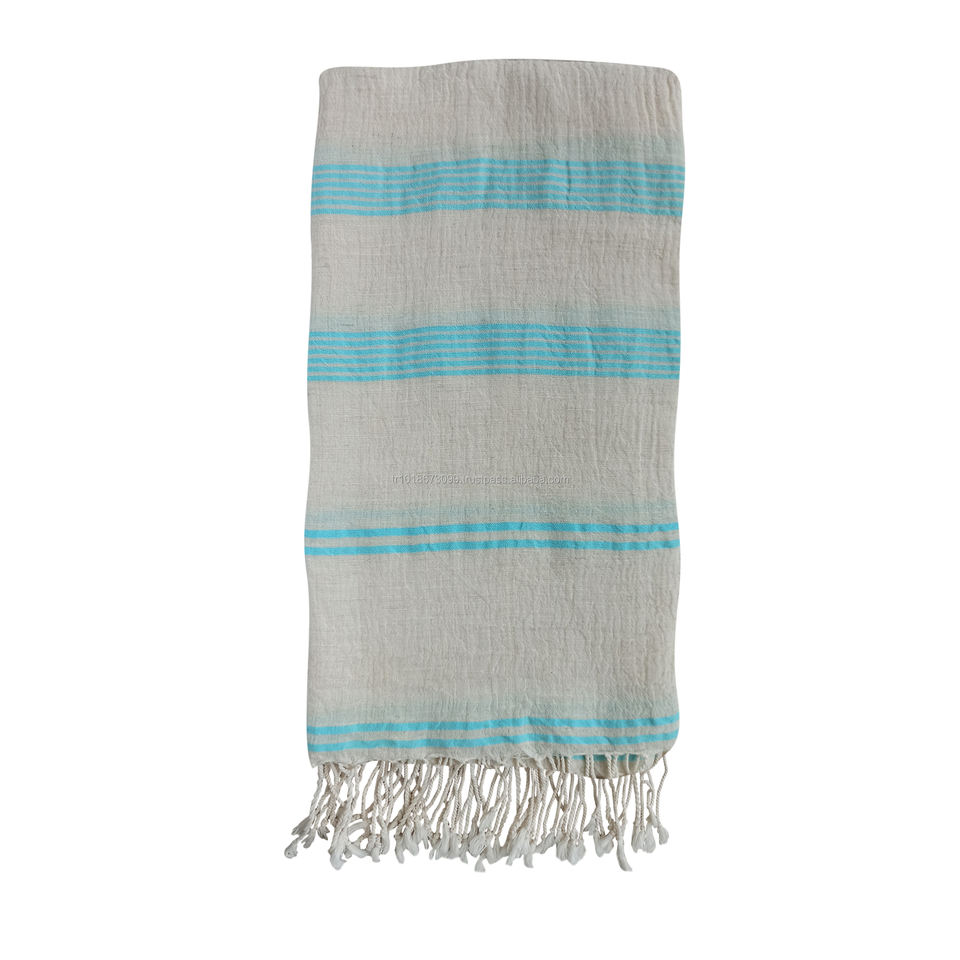 Linen Cotton Peshtemal Beach Hammam Travel Towels, 90x170cm 35x66" Made in Turkey Fair-trade Light Weight Naturel-Blue