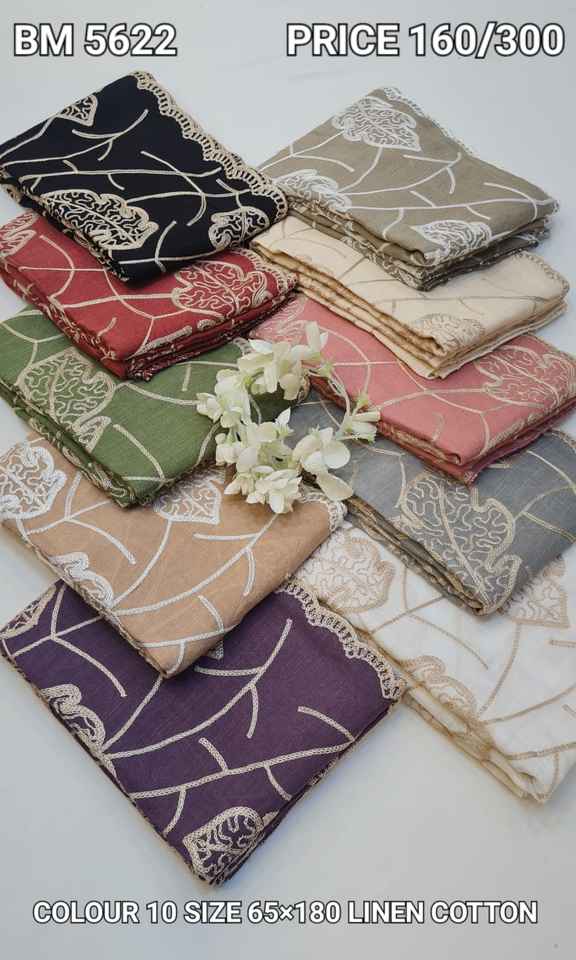 Linen Cotton Satin Floral Lace Embroidery Work Fabric 12 Colours Border Accents Delicate Frayed Edge Fashion Shawl All Season