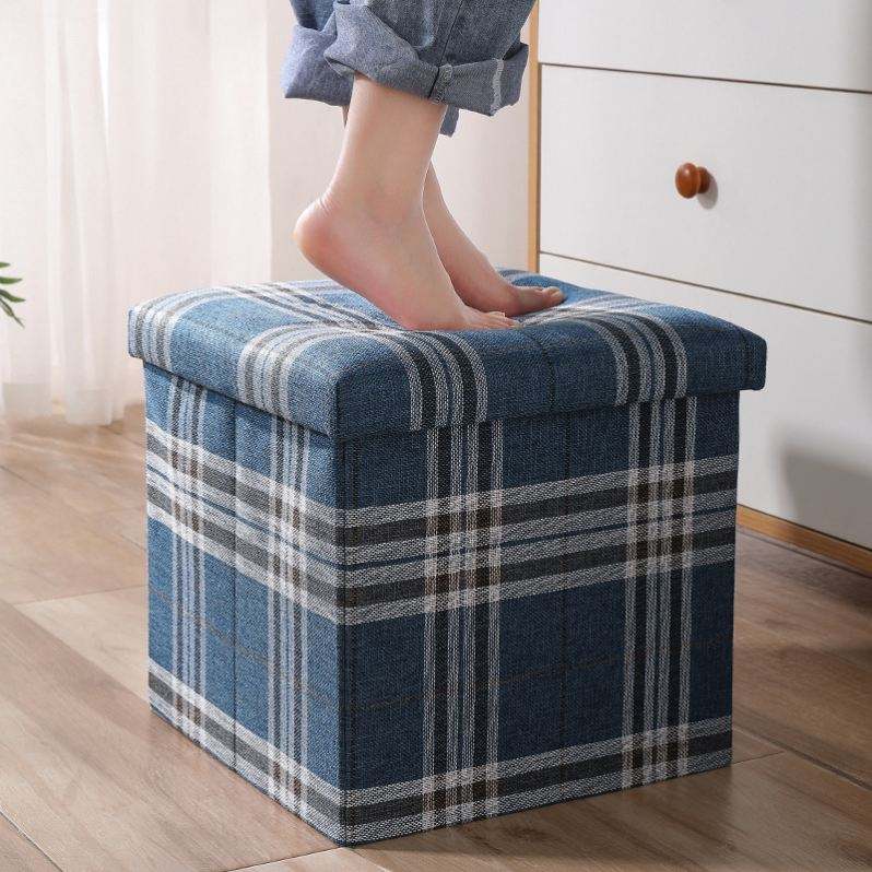 Linen Fabric Folding Ottoman Cube Storage Box Shoe Bench Foot Rest Suitable for Bed