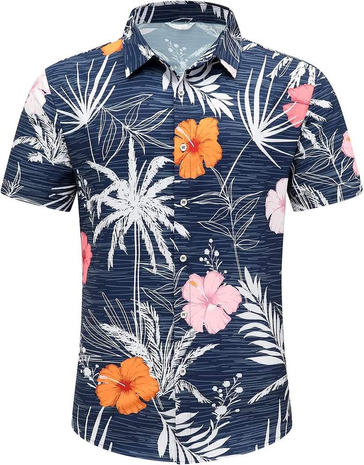Linen Hawaiian Shirt Tops Vintage Short Sleeve Button Down Beach Shirt Male Tropical Floral Summer Pullover Party Holiday